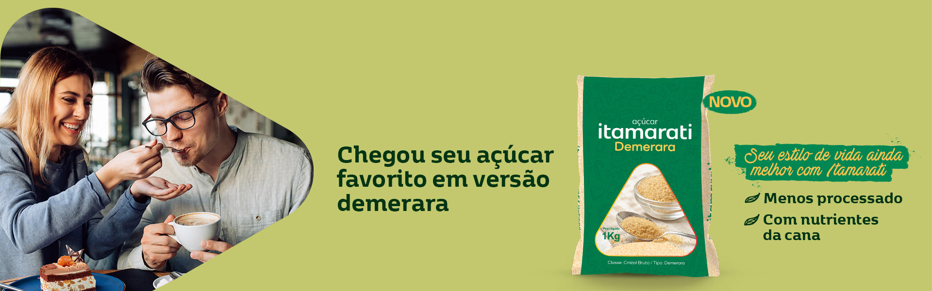 O açúcar Demerara Itamarati é constituído de cristais mais grossos, com tons caramelo e levemente mais úmidos e, devido a um processo diferenciado de produção, seus nutrientes naturais são preservados. Um açúcar com sabor característico, deixando as receitas e bebidas favoritas dos consumidores ainda mais saborosos.